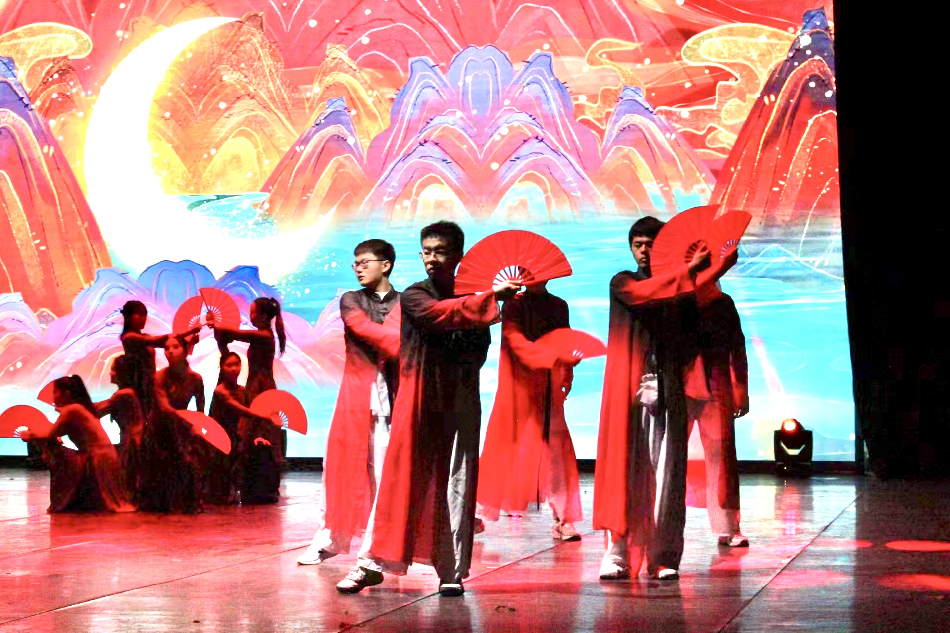 器件2201班在本届舞蹈大赛中选择了代表了力量和柔美的舞蹈《象王行》。《象王行》本身寓意着进退有度,力刚而行事不莽,是关大洲最具代表性的国风作品之一,也是其为节目《国家宝藏》量身打造的开场音乐。同学们采取扇舞的形式,以扇子为道具,通过灵动流畅的古典舞舞姿在空间中变换,加上音乐的磅礴气势,舞出一幅蛟龙觉醒的画面,展现出一种别样的美。呼应了歌曲刚中带柔,大气浩瀚的风格。器件2201班同学们的表演不仅是一场视觉的盛宴,更是对传统文化的传承与发扬,展现了中华文明的源远流长,中华优秀文化的博大精深。