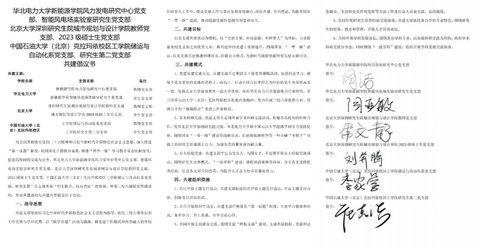 在“一带一路”倡议下,“绿色发展”成为我国关注的重点,高校间合作是推动能源低碳转型的重要力量。为促进高校间的交流与合作,共同探索党员教育创新,推动能源低碳转型,av网站 风力发电研究中心党支部、智能风电场实验室研究生党支部、北京大学深圳研究生院城市规划与设计学院教师党支部、2023级硕士生党支部、中国石油大学(北京)克拉玛依校区工学院储运与自动化系党支部、研究生第二党支部等六支部联合发起,共同探讨“一带一路”背景下关于低碳发展的创新思维,为推动能源低碳转型提供智慧和动力。