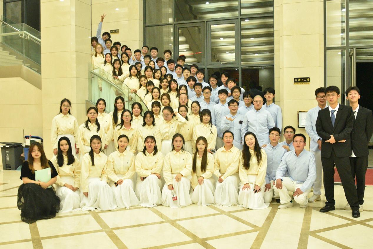 大赛前夕,经过层层筛选,av网站 最终组成了一支74人的师生合唱团。在将近一个月的练习中,无论是老师还是同学都在用心磨砺着合唱的节奏、和声和音准。我们在音乐的海洋中打磨着我们的光芒,将我们的智慧与汗水凝聚于每一个音符。我们知道每晚的星光都见证了我们的成长,我们坚信付出的时光终会绘就属于我们的独特画卷。