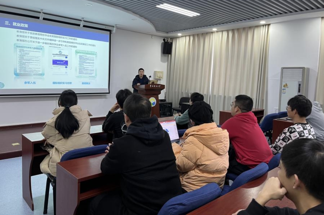 为帮助2024届毕业生深入了解就业政策,进一步提升学生求职的综合素质和能力,持续推进学院就业工作,11月14日下午,av网站 在主B606召开2024届毕业生就业指导讲座,学生处就业指导中心老师李健进行主讲,2024届毕业生参会。会议由研究生辅导员陈思主持。