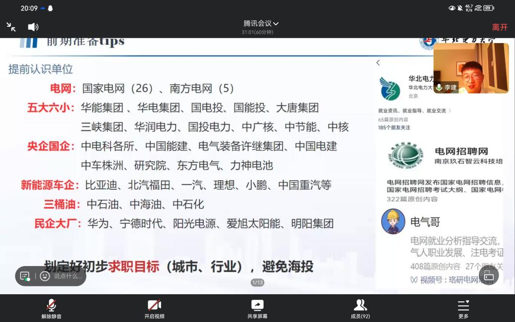 李建,现就职于华为数字能源,曾任av网站 研究生会主席。他从“认识工作单位、锁定就业目标、熟悉面试内容、日常培养能力”多方面出发,介绍了适合本院学生就业去向的各行各业公司,为大家讲解如何描绘属于自己的就业蓝图,希望大家充分利用三年读研时光靶向提升就业需要的专业素养。同时,他还重点介绍了华为数字能源BD的面试流程及加分技巧,提供了更多就业实用信息。