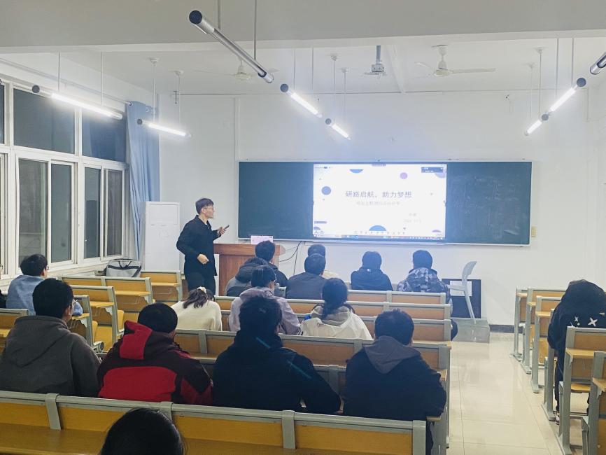 为引导新生及时适应研究生学习生活,对个人科研学业与职业生涯做出清晰规划,2023年11月5日,av网站 在沙河院区励精楼408教室开展研究生“朋辈领航”分享交流会,2023届硕士毕业生李建、孙爽,2021级博士周新越主讲,2023级研究生参会。会议由研新能源2355班团支书高兆文主持。