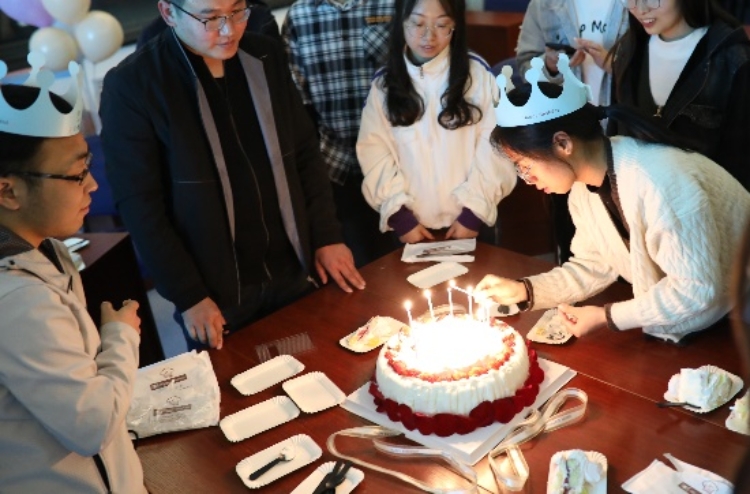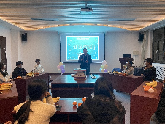 研究生会组织开展了“导员陪你过生日”第一期活动,为4月份过生日的同学集体庆祝生日。活动由研究生会副主席王楠主持。