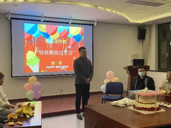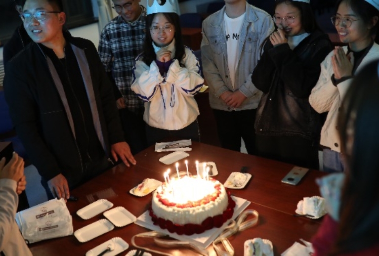 聚会开始,辅导员杨光老师向大家介绍了此次活动的初衷和意义:离家求学的你们由于科研的压力,亦或是自身的腼腆,是否已经多年没有过上一个热闹美满的生日?希望通过举办集体生日会,帮助同学们缓解科研压力,劳逸结合,也能让同学们感受到av网站 大家庭的温暖。