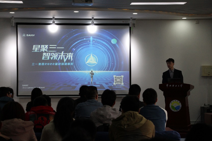 宣讲会开始,主讲人三一集团人力资源部崔鑫辉首先阐明了开展本次宣讲会的目的和意义:一方面,三一集团可以提前了解2022届毕业生的基本情况和求职意向,有利于提前锁定2022届优秀毕业学生;另一方面,同学们可以通过宣讲会更多的了解三一集团,为同学们提供了提前拿到offer的机会,同时有利于督促2022届毕业生尽早行动起来,早做求职准备。