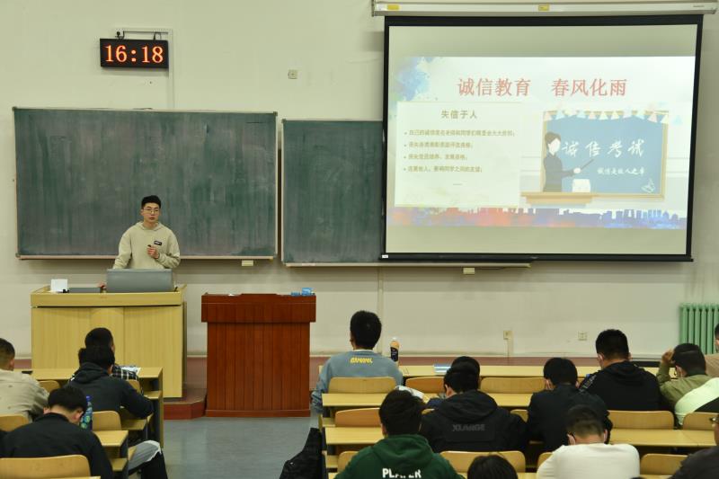 “人无信不立”。杨子发老师向与会同学强调了诚信的重要性,诚信在每位同学的一生中有着举足轻重的地位。他告诫同学们任何考试坚决不能作弊,一旦触碰这条高压线将会对同学们未来发展有很大限制,甚至留下一辈子的污点。作为一名大学生,言必诚信,行必忠正,志必确凿,可谓足矣。