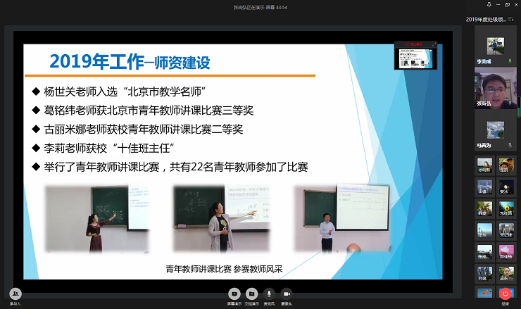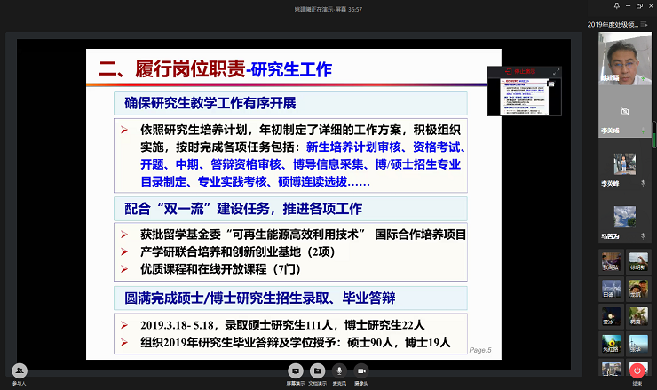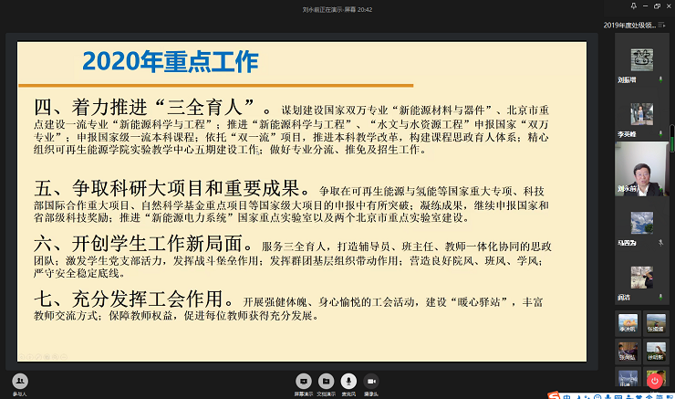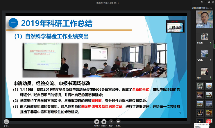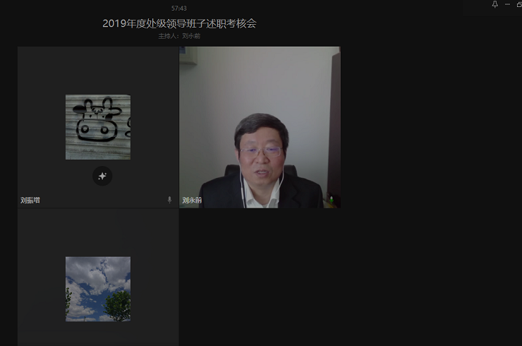 通过企业微信视频会议召开了2019年度处级领导班子、处级干部考核会,会议由学院党委书记刘永前主持,学院领导及全体教职工参加了会议。
