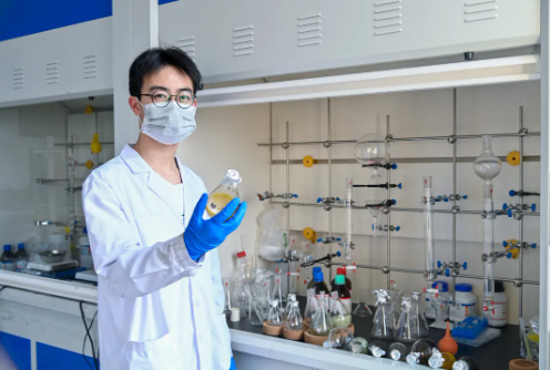 李茂辉大二加入课题组,开始了他的科研之旅。刚开始接触实验的时候,他也是一个什么都不懂的小白,任何知识与操作都需要一点一滴的积累,李茂辉至今还对“过柱子”印象深刻:“一开始我总是在硅胶上砸个坑出来,经过不断练习才慢慢学会如何操作。”做实验需要付出精力,周末与寒暑假期里,李茂辉都一头扎进实验室,“实验总是一站就是一天,期间还要不停地来回在几个仪器之间走动进行操作,小小的实验室里一天下来能有上万步。”