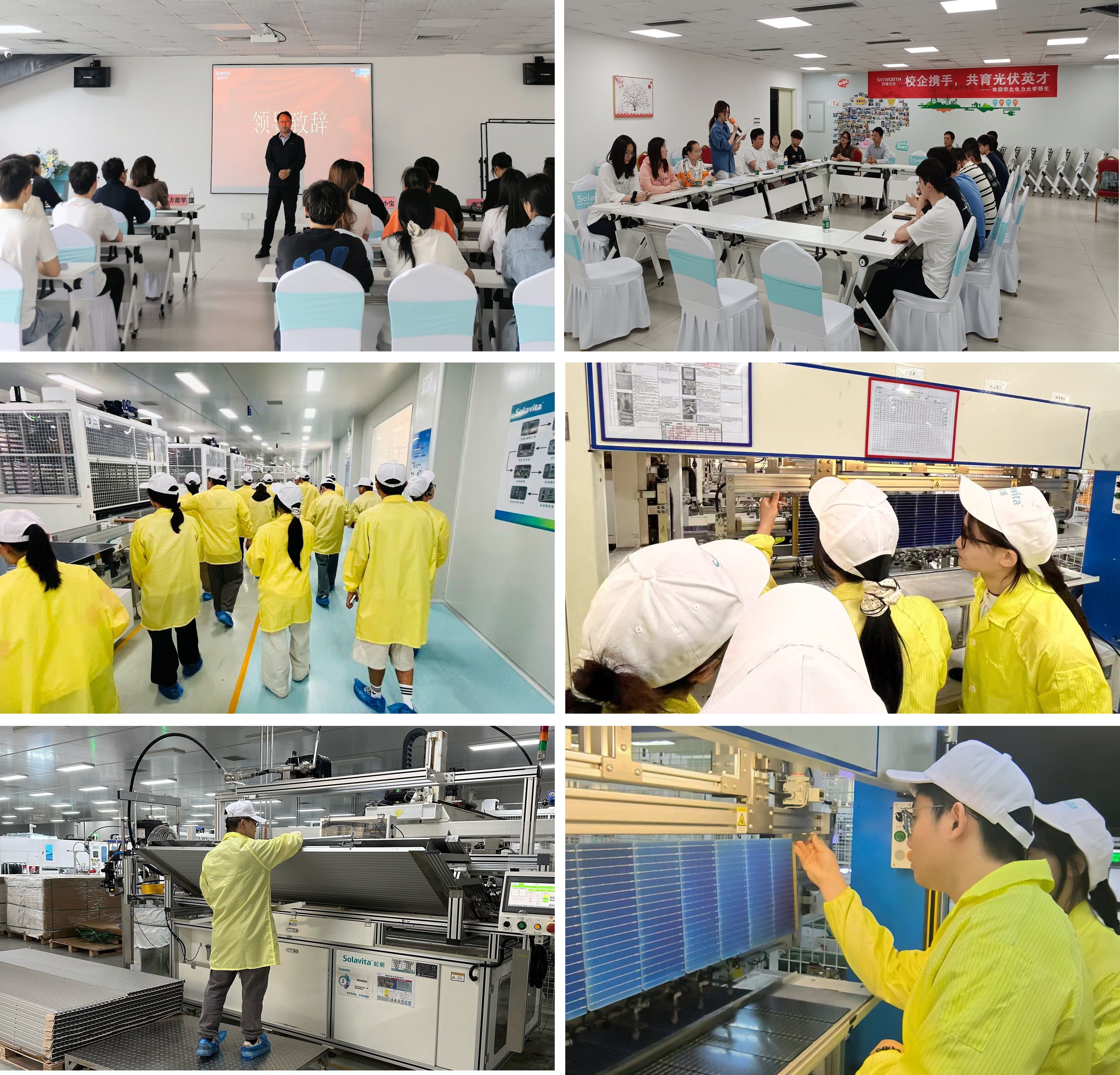 本次实习由校企双方组建联合指导团队,共同制定“现场培训+岗位实践+前沿研讨”的三维实习方案。企业方面由创维光伏公司党委副书记陈志远牵头,部品事业部制造总部总经理龙艳军、钙钛矿实验室主任杨铁斌、人力资源经理李赞、制造基地生产部经理李福临等专家组成指导团队,av网站 选派方霞琴老师全程带队。