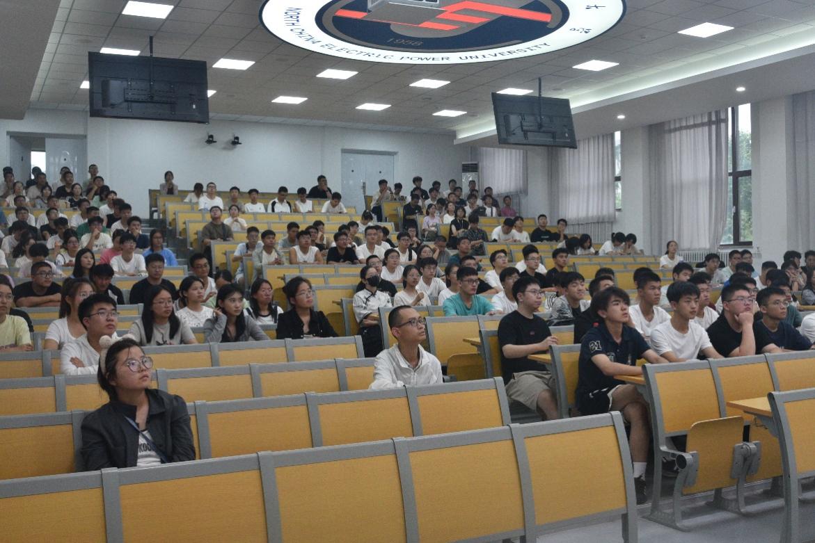 李美成介绍了av网站 的发展概况,结合国家“双碳”战略与新能源发展趋势,阐述“能源是主战场,电力是主力军”的理念,详细介绍了av网站 本科及研究生发展现状、“1141”人才培养模式,以及在科研成就、科研平台、师资力量和国际影响力方面的优势。他号召同学们拼搏奋斗,努力成为新能源电力领域的领军人才。