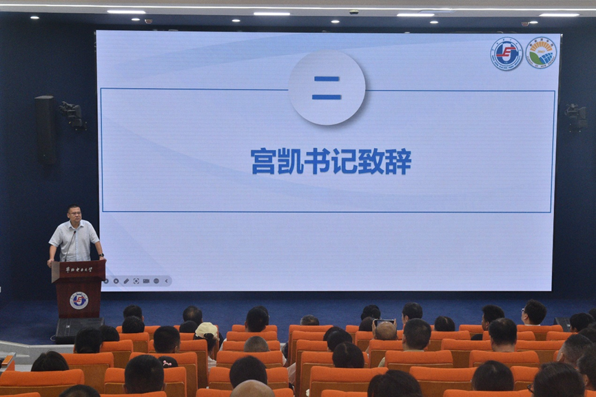 宫凯在致辞中强调党的二十届三中全会全面部署推进教育科技人才体制机制一体改革,为高等教育发展指明了方向,对科技创新尤其是新能源高质量发展提出了新的更高的要求,家长和新能源学子选择新能源就是选择了好未来。同时,他鼓励新生珍惜大学时光,扎根新能源领域,立足新发展阶段,为中国式现代化和“双碳目标”作出新的更大贡献。