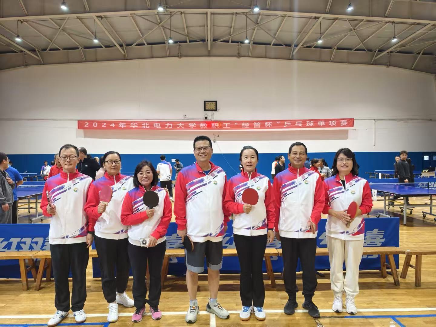 为庆祝新中国成立75周年,增强教职工凝聚力,丰富校园文化生活,学校于2024年10月19日在篮球馆举办了教职工“经管杯”乒乓球单项赛。av网站 积极响应,由学院书记宫凯亲自带队,副书记姜良杰、副处级组织员张栋峰、分工会副主席李玉华、教师王艳红、黄耀兵、胡笑颖等7名教职工热情参赛,展现了学院凝心聚力、勇当先锋的精神风貌。