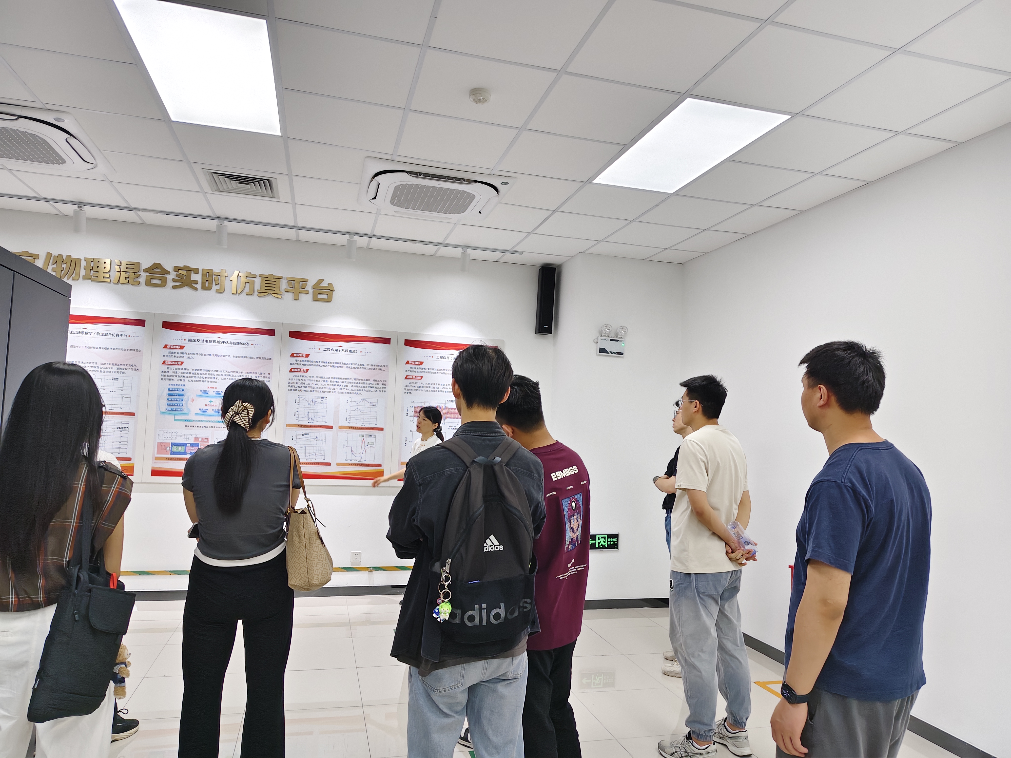 最后大家参观了新能源发电数字/物理混合实时仿真平台,这是可再生能源并网全国重点实验室六大科研平台之一,主要用于新能源发电精细化建模、运行特性模拟、控制策略优化及核心装置/系统的研发。师生们实地观摩了高保真风电机组数字孪生系统及并网仿真演示,大家纷纷表示,此次参观大大拓宽了对风电场智能化管理与仿真技术的认知视野。