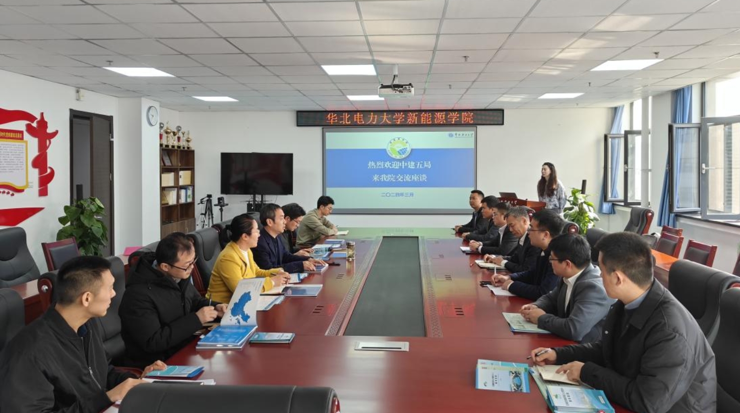 3 月 21 日上午,中建五局第四建设有限公司党委副书记/工会主席刘力、人力资源部经理郑栋飚、华北分公司副总经理杨超杰、石家庄市裕华区人才服务中心副主任王彬一行7人来到av网站 进行座谈交流。av网站 院长李美成、党委副书记姜良杰、能源电力创新研究院副院长宋记锋、生物质教研室主任黄耀兵、新能源材料与器件教研室教师王龙泽、团委书记黄凯兰、20级辅导员杨子发参加此次座谈会,会议由黄凯兰主持。