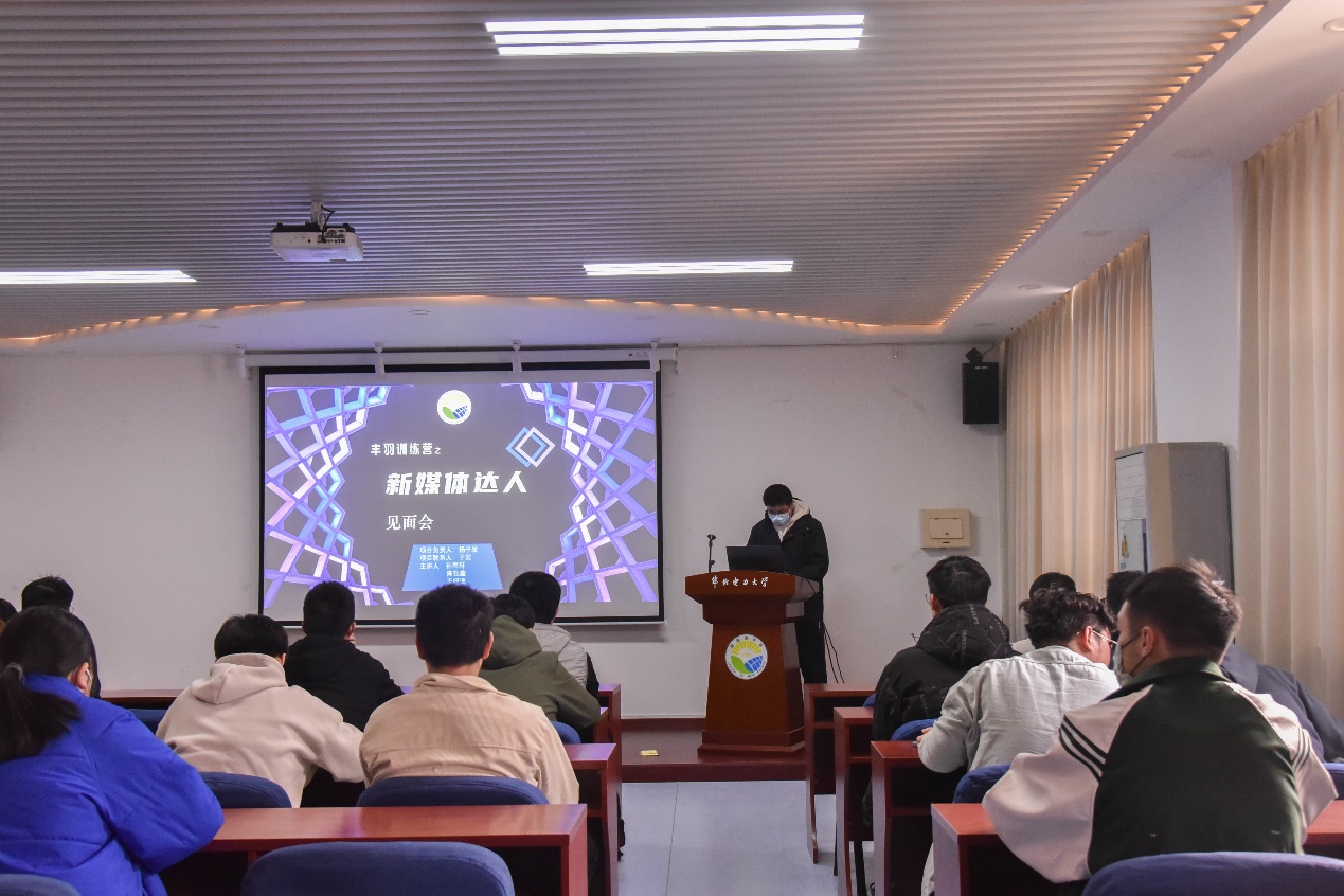 会上,杨子发首先向同学们介绍了丰羽训练营的立项背景、目的及意义,并就学校“奖、贷、助、勤、免、补”资助体系进行了详细的讲解,引导学生树立诚信意识和感恩意识。他期望同学们可以通过此次活动丰富新媒体知识,掌握并熟练应用新媒体技能,为学习生活增加更多的可能性。