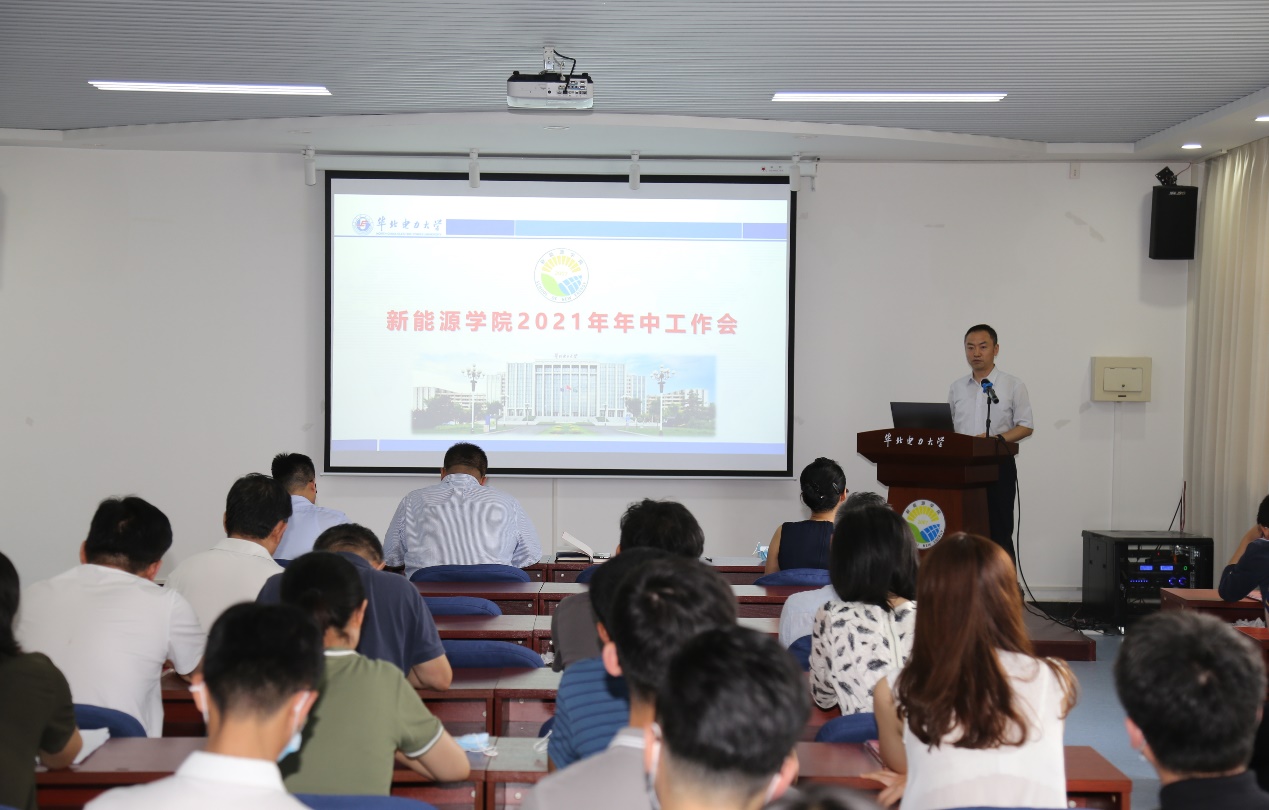 在报告厅召开2021年年中工作会,总结上半年工作开展情况,部署暑期及下半年重点工作,全体教职工参会,会议由学院党委副书记、分工会主席姜良杰主持。