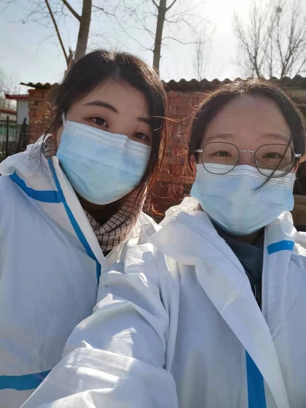 研新能源2043班佟鑫所在的北店村中很多人不会网上预约核酸检测,村干部召集大学生作为志愿者,为村民提供指导和帮助。她与发小穿上了最美的防护服,维持秩序,登记信息。“参加志愿服务虽然辛苦,但当看到村民们一个个有序检测完毕后回家时,内心会有很大的满足,感觉一切都值得,很快乐。如果还有需要我的时候,我还会积极地为社会贡献出自己微薄的力量!”她说,“全民检测真的很震撼,世界这么多国家,只有我们国家有如此强的号召力,大家积极配合,尽自己的一份力量,我相信国家一定能打赢这场疫情防控阻击战!”
