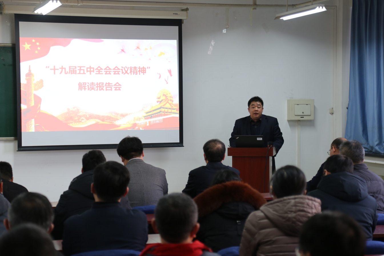 、水利与水电工程学院党委联合举办了“十九届五中全会精神学习宣传”报告会。报告会邀请马克思主义学院院长王伟教授就“十九届五中全会”会议精神进行解读,两院教职工和学生党支部书记参加了此次报告会。
