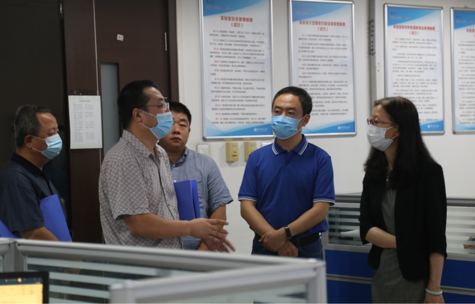 2020年9月4日上午,我校副校长毕天姝、实验室管理处副处长高继周等老师,到av网站 进行实验室安全现场检查。学院院长李美成和书记王集令向毕校长介绍了学院实验室的基本情况,并陪同毕校长一行共同随机抽检了学院的多间实验室。